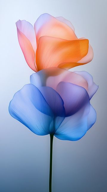 Imagine a bloom, not just any ordinary flower, but one that dances on the breeze in radiant hues of blue, peach, and pink. Such is the essence captured in this exquisite floral art print. The delicate petals of the flower are bathed in a gradient of colors, each blending seamlessly into the next, conveying a sense of gentle motion and ethereal beauty. The background, an unobtrusive soft gray, ensures that all eyes focus on the central subject—the flower.