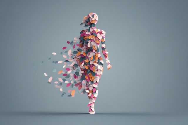 Imagine a world where flowers and art fuse into a captivating dance of hues and forms. This is precisely the realm captured by the art print "Whimsical Floral Cascade." As you gaze upon this stunning artwork, you'll be entranced by the figure made entirely of floral petals, each petal fluttering as if caught in a gentle breeze. The background's subtle grey tone magnifies the vibrant pinks, yellows, whites, and blues of the petals, creating a striking contrast that both soothes and stimulates the mind. The figure itself, portrayed in mid-stride, exudes a graceful dynamism, suggesting movement and transformation. This artwork brilliantly plays with the notion of impermanence, with petals seemingly dispersing into the air, symbolizing the fleeting yet beautiful nature of life. As a piece, it beckons the observer into a realm of peaceful introspection and celebrates the beauty of the natural world through a modern, artistic interpretation. The sophisticated choice of colors and the fluidity of the composition ensure that this print becomes a conversation piece in any setting, provoking thoughts about art, nature, and the interplay between the transient and the eternal.