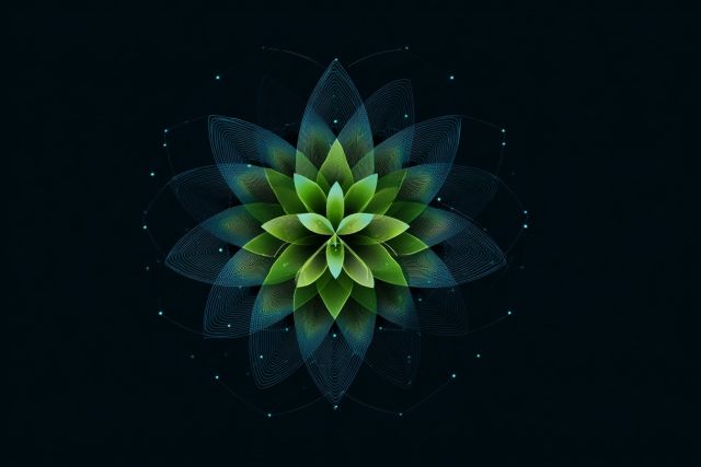 Envelop your senses in an enchanting display where nature meets digital artistry with "Luminescent Lotus." This exquisite art print, masterfully crafted, transports viewers into a sublime realm reminiscent of outer space but infused with earthly elements. At its core, a lotus flower perches elegantly, bathing in an otherworldly glow that magnifies its natural grace. Radiating from this central floral figure are fine, luminous lines that mimic celestial constellations. These lines weave an intricate web of beauty, creating a stellar eye-catching mandala pattern that pulsates with life. Shimmering blues and greens interplay harmoniously, reminiscent of the serene hues found in deep oceans or late evening skies. Each petal, meticuluously shaped and vividly portrayed, seems to pulsate with a gentle but powerful life force, making this artwork a living entity on your wall. As you gaze deeper into this mesmerizing flower, you might imagine the soft ambience of another world—a serene meditation chamber lit by the bioluminescence of this floral entity. The remarkable detail and vibrant colors not only enhance the aesthetic appeal but also evoke a soothing tranquility, making this piece a pinnacle of artistic digital craftsmanship that invites prolonged contemplation and admiration.
