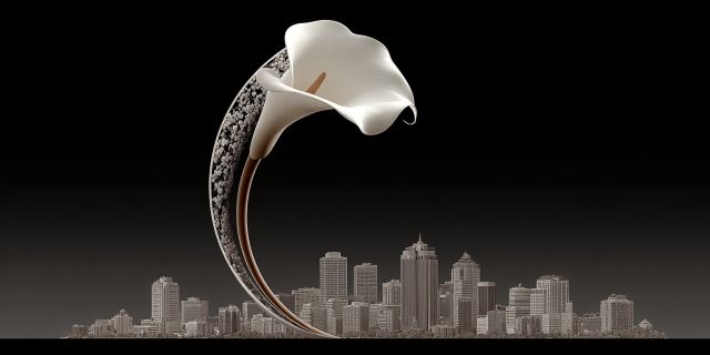 Graceful Calla Lily Over Cityscape: A Harmonious Blend of Nature and Urban