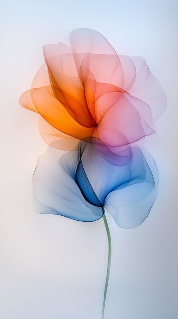 Hovering gently against a soft, gradient backdrop, the delicate contours of a transluscent flower manifest a spectacle of grace and tranquility. Ethereal hues of peach, violet, sky blue, and a hint of soft yellow converge in a petal dance that speaks to the essence of natural beauty transformed into artistic expression. Through an exquisite interplay of light and color, this artwork captures the fleeting, tender moment of a bloom in its glory, its layers almost moving as if stirred by a serene breeze. The art piece, an alluring blend of refined beauty and subtle emotion, evokes a sense of peace and introspection. Ideal for those seeking to infuse their space with a touch of nature's elegance wrapped in a modern art aesthetic, this piece not only serves as decor but as an invitation to contemplate the finer, often overlooked details of the natural world. As light shifts throughout the day, so too does the interplay of colors in the artwork, offering an ever-evolving backdrop that enchants and captivates.
