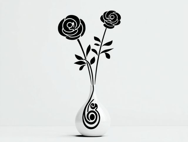 Monochrome Elegance: Stylized Roses in a Swirl-Embellished Vase