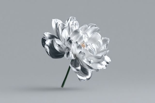 Picture a singular, majestic flower captured in the subtle embrace of monochrome. The artwork presents a tulip, not just in any form but with its petals unfurled in a dance of shadows and light. Each petal, painted with strokes of gray and white, swirls around an unseen center, suggesting movement frozen in time. The contrasts between the shades enhance the visual texture, making each petal distinct yet part of a harmonious whole. The background’s soft gray hue complements the flower, ensuring that all eyes honor the central motif. This piece transcends traditional floral art by embracing minimalism and focusing on the intricate forms and emotional depth flowers can convey. Instead of vibrant colors, the choice of monochrome elevates the subject, granting it a universal appeal that resonates with varied interior designs and personal tastes. The artwork invites viewers to pause and reflect, making it a perfect statement piece that adds a touch of serenity and sophistication to any room.