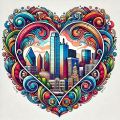 Vibrant Heart-Shaped Tribute to Dallas, TX Skyline in Cubist Art Style