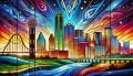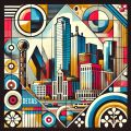 Vibrant Geometric Interpretation of Dallas, Texas Skyline and Culture