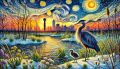 Enchanting Dallas Skyline and Wildlife in Van Gogh's Style