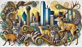 Cubist Coyotes in Urban Dallas: A Fusion of Nature and Cityscape