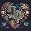 Artistic Heart-Shaped Circuit Map of Plano, Texas with Floral and Bird Motifs