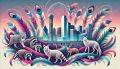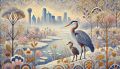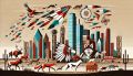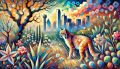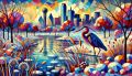 Enchanting Dallas Skyline Meets Vibrant Wildlife in Cubist Dream