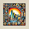 Sunrise Over Dallas: A Fusion of Modern Skyline and Native American Motifs