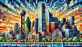 Vibrant Cubist Interpretation of Dallas's Diverse Urban Landscape