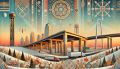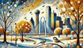 Dreamlike Winter Scene of Dallas with Stylized Cubist Influence