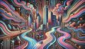 Vibrant Cubist Interpretation of Dallas Skyline with Dynamic Flows