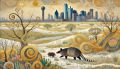 Enchanting Dallas Night: Raccoons Amidst Golden Urban Silhouette