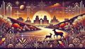 Surreal Twilight Over Dallas: Deer by the Riverside Cityscape