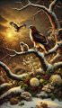 Winter's Majesty: Hawks Amid Snow-Capped Trees and Golden Hues