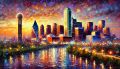 Vibrant Dusk Over Dallas: An Impressionist Cityscape Masterpiece