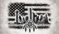 Enchanting Silhouette of Dallas Skyline Enhanced with Native American Feathers