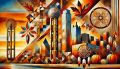 Autumn Embrace: A Cubist Tribute to Dallas's Iconic Reunion Tower