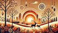 Serene Wildlife Gathering in a Timeless Earth-Toned Illustration