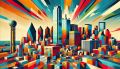 Vibrant Cubist Interpretation of Downtown Dallas in Bold Colors
