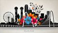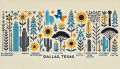 Vivid Artistic Representation of Dallas Landmarks and Native Flora