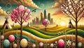 Harmonious Blend of Seasonal Landscapes and Cubist City Skylines