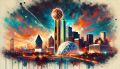 Reunion Tower Amidst Dallas Skyline in Vibrant Artistic Expression