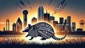 Enigmatic Armadillo and Dallas Skyline in Van Gogh-esque Brushstrokes