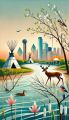 Enchanting Dallas Forest Scene with Teepees and Stylized Fauna