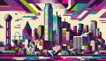 Vibrant and Colorful Interpretation of Dallas Skyline in Artistic Decor