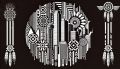 Circuit-Inspired Skyline Depiction of Downtown Dallas in Monochrome