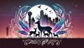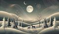 Ethereal Winter Night in Texas: Deer and Tribal Teepees under Moonlight