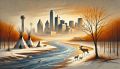 Evocative Dallas Skyline Merged with Native American Artistry