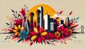 Vibrant Cubist Interpretation of Dallas Skyline with Floral Motifs