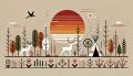 Stylized Representation of Dallas Skyline with Native American Motifs