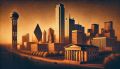 Vibrant Artistic Rendition of Dallas Skyline with Cultural Symbols