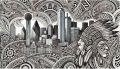 Geometric Exploration of Downtown Dallas in Monochrome Cubism