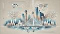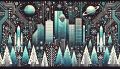 Futuristic Cityscape Meets Natural Elements in Electronic Tapestry