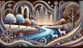 Winter Wonderland: A Cubist Interpretation with Klimt-Inspired Touches