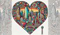 Colorful Heart-Shaped Cubist Representation of Downtown Dallas
