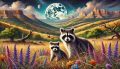 Moonlit Embrace: Raccoon Mother and Cub Amidst Texan Wildflowers