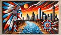Sunrise Over Dallas: A Fusion of Native American Art and Urban Landscape