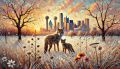 Cubist Wildlife and Urban Fusion: A Dallas Inspired Autumnal Scene