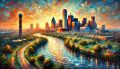 Vibrant Impressionist View of Dallas Skyline from Cedar Ridge Preserve