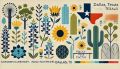 Evocative and Colorful Representation of Dallas, Texas Flora and Iconography