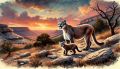 Mother Mountain Lion and Cub at Sunset in Rugged Texas Landscape