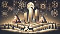 Enchanting Dallas Skyline Winter Artwork with Native American Motifs