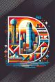 Vibrant Cubist Interpretation of Dallas Landmarks Within a Giant 'D'