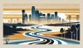 A Stylized Interpretation of Dallas with Seasons Converging at Woodall Rodgers Freeway